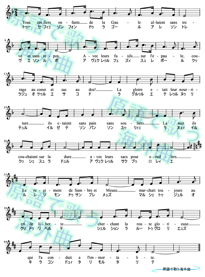 楽譜の歌詞は、原詞・カナとも1番のみ表記しています。